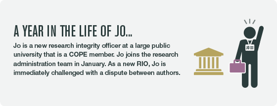 我们想邀请你和我们玩一个游戏。想象你乔,一个虚构的新的科研诚信官(力拓)在大也是虚构的公立大学(这可能是一段对你如果你是一个编辑器或一个出版商,但请…有一些乐趣和试一试!)。作为一种新的里约热内卢,乔立即挑战与作者之间的纠纷。
